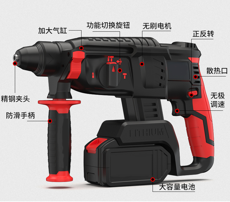 Brushless motor, efficient perforation, drilling through walls as easily as through mud.